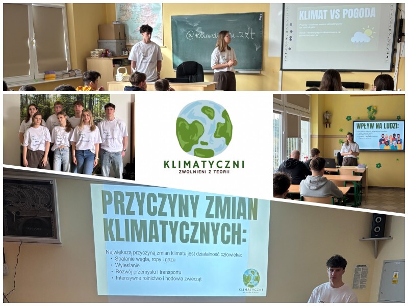 W dniach 16-17 marca 2026 roku w naszej szkole uczniowie I Liceum Ogólnokształcącego w Chodzieży realizowali we wszystkich klasach 5-8 projekt "Klimatyczni". „Klimatyczni” – wiedza dla przyszłości naszej planety. W dobie rosnących wyzwań klimatycznych coraz większego znaczenia nabiera edukacja, która pozwala lepiej zrozumieć zachodzące zmiany i ich konsekwencje. Projekt „Klimatyczni” to inicjatywa edukacyjna realizowana przez uczniów I Liceum Ogólnokształcące im. św. Barbary w Chodzieży, której celem jest poszerzanie świadomości na temat klimatu oraz wpływu działalności człowieka na środowisko. Działania w ramach projektu koncentrują się na przekazywaniu rzetelnych informacji naukowych w przystępny sposób. Podczas spotkań i warsztatów uczestnicy poznają przyczyny globalnego ocieplenia oraz jego skutki dla przyrody, gospodarki i życia codziennego. Szczególny nacisk kładziony jest na zrozumienie procesów kształtujących współczesny klimat. Ważnym elementem projektu jest także rozwijanie umiejętności świadomego odbioru informacji. Uczestnicy uczą się rozpoznawać i analizować różne przekazy dotyczące klimatu, co pomaga w podejmowaniu przemyślanych i odpowiedzialnych decyzji. Projekt podkreśla również znaczenie codziennych działań. Pokazuje, że nawet niewielkie zmiany – takie jak oszczędzanie energii, ograniczanie odpadów czy bardziej odpowiedzialne wybory konsumenckie – mogą mieć pozytywny wpływ na środowisko, jeśli są wprowadzane konsekwentnie. „Klimatyczni” to projekt, który nie tylko przekazuje wiedzę, ale również zachęca do działania i budowania odpowiedzialnej postawy wobec środowiska. Aktualności, materiały edukacyjne oraz ciekawostki można znaleźć w mediach społecznościowych projektu – na Instagramie @klimatyczni_zzt oraz na Facebooku Klimatyczni. Czas nas goni!!!