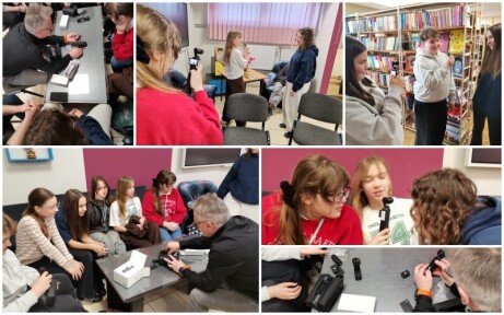 W ramach projektu „Mam TV - Młodzieżowa Akademia Mediów" rozpoczęły się w naszej szkole na początku marca warsztaty filmowe, które dla grupy chętnych uczniów poprowadził Pan Piotr Melnarowicz. Uczestnicy zajęć oraz ich opiekunowie przeszli fachowe szkolenie z zakresu obsługi kamery video oraz ochoczo testowali nowy sprzęt. Ogromną frajdę sprawiło wszystkim kręcenie pierwszych filmików i przeprowadzenie krótkich wywiadów.