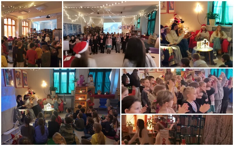 We wtorek, 9 grudnia, w iście świątecznej już atmosferze, odbyła się akcja czytelnicza, dedykowana najmłodszym uczniom naszej szkoły. Przygotowały ją i przeprowadziły starsze koleżanki: Iga Majchrzak, Jagna Pachowicz, Ida Zachciał, Julia Kaja i Aleksandra Skiba z kl. 7b. W tym roku nasi milusińscy wysłuchali opowieści Chrisa van Allsburga "Ekspres polarny". Dodatkową atrakcją spotkania był miły przerywnik muzyczny, w czasie którego uczestnicy wyćwiczyli kroki do wesołej świątecznej piosenki, a następnie wspólnie ją zatańczyli.